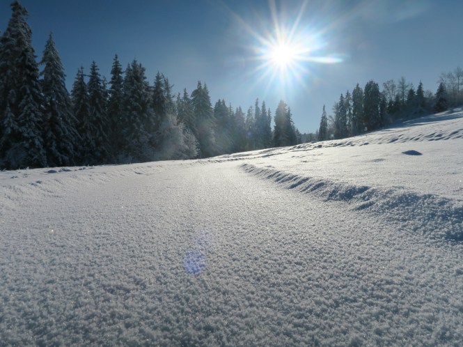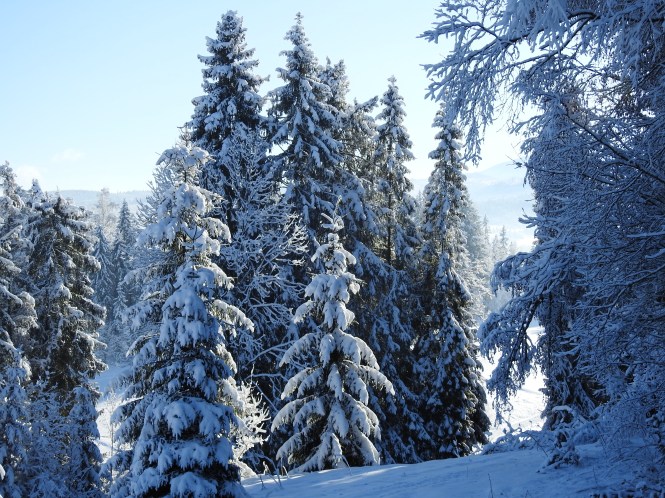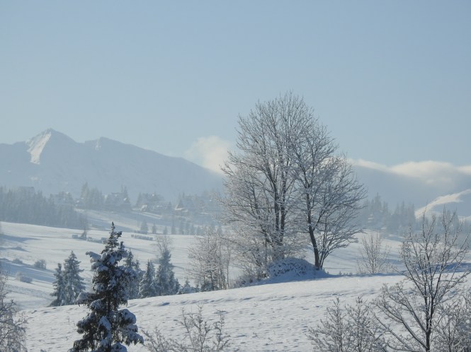 Przed Domem w Dolinie jest łagodny stok. Idealny na sanki i inne zabawy na śniegu. Jego położenie względem słońca sprawia, że śnieg utrzymuje się w tym miejscu długo. Popatrz na zdjęcie poniżej. Wychodząc z Domu na okoliczne wzgórza (Wierszyczek lub Grapa) można cieszyć się zimowym spacerem wśród lasów i zaśnieżonych łąk.