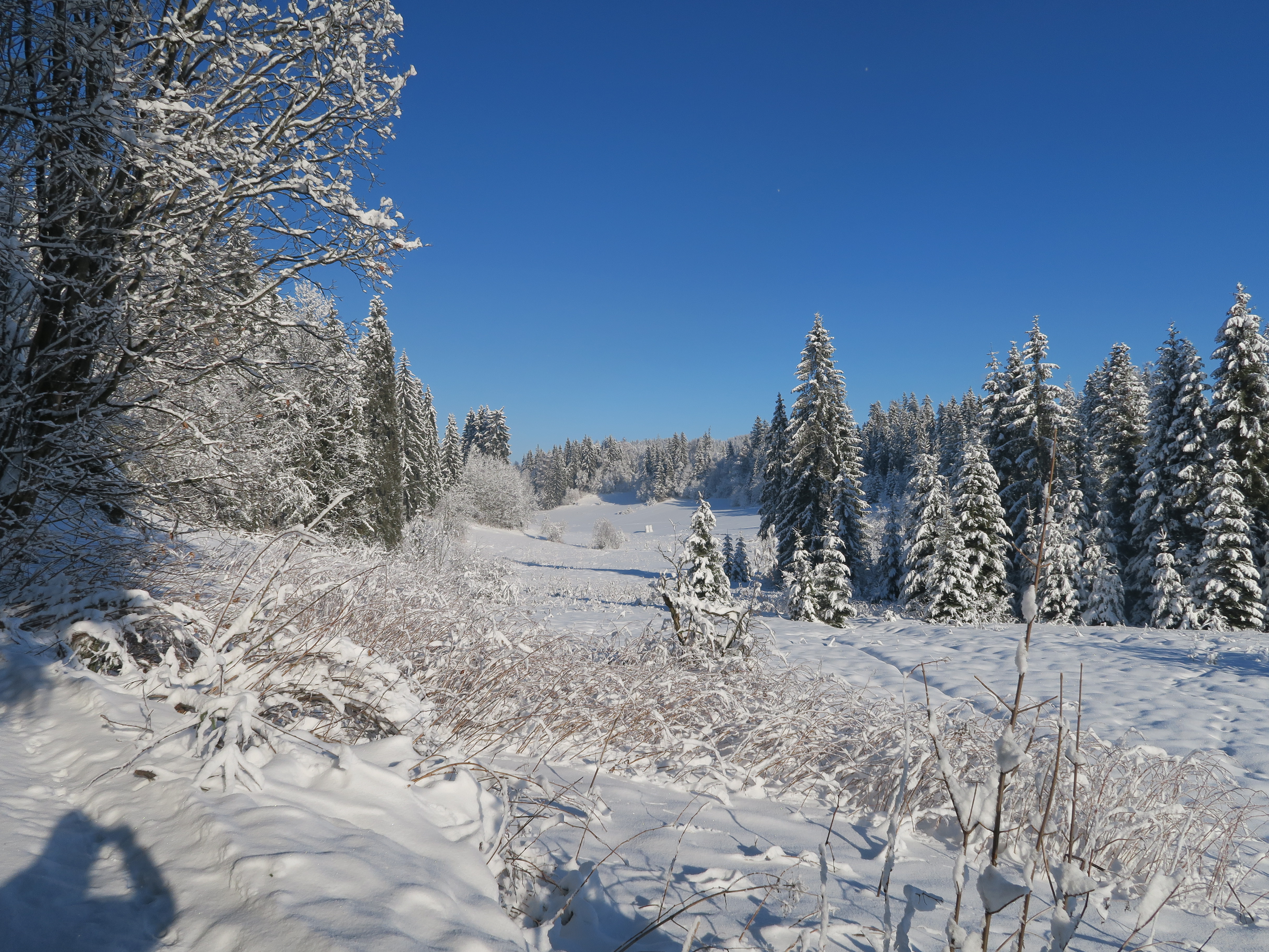 Przed Domem w Dolinie jest łagodny stok. Idealny na sanki i inne zabawy na śniegu. Jego położenie względem słońca sprawia, że śnieg utrzymuje się w tym miejscu długo. Popatrz na zdjęcie poniżej. Wychodząc z Domu na okoliczne wzgórza (Wierszyczek lub Grapa) można cieszyć się zimowym spacerem wśród lasów i zaśnieżonych łąk.
